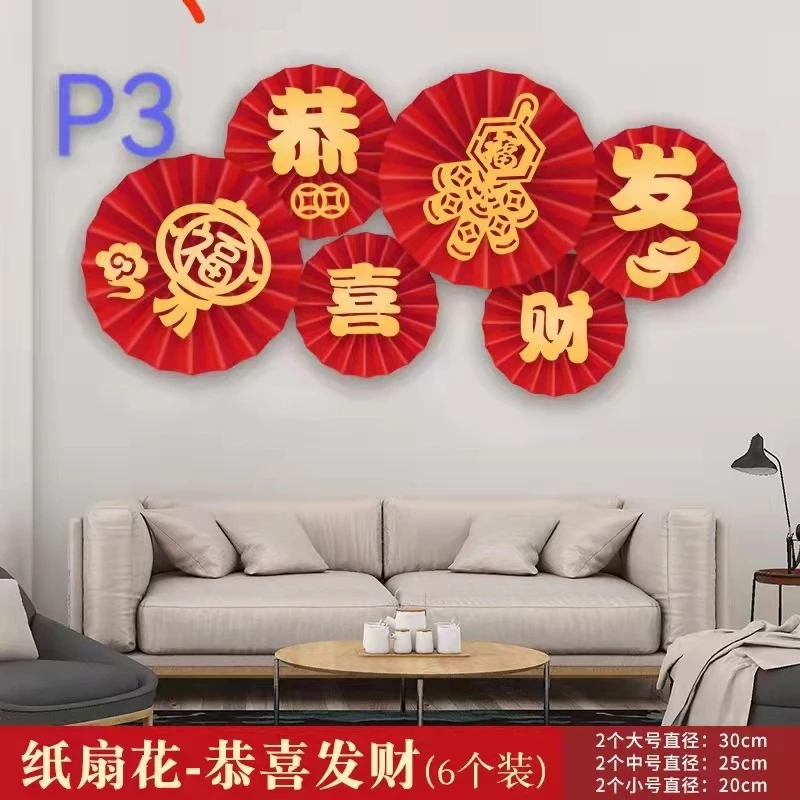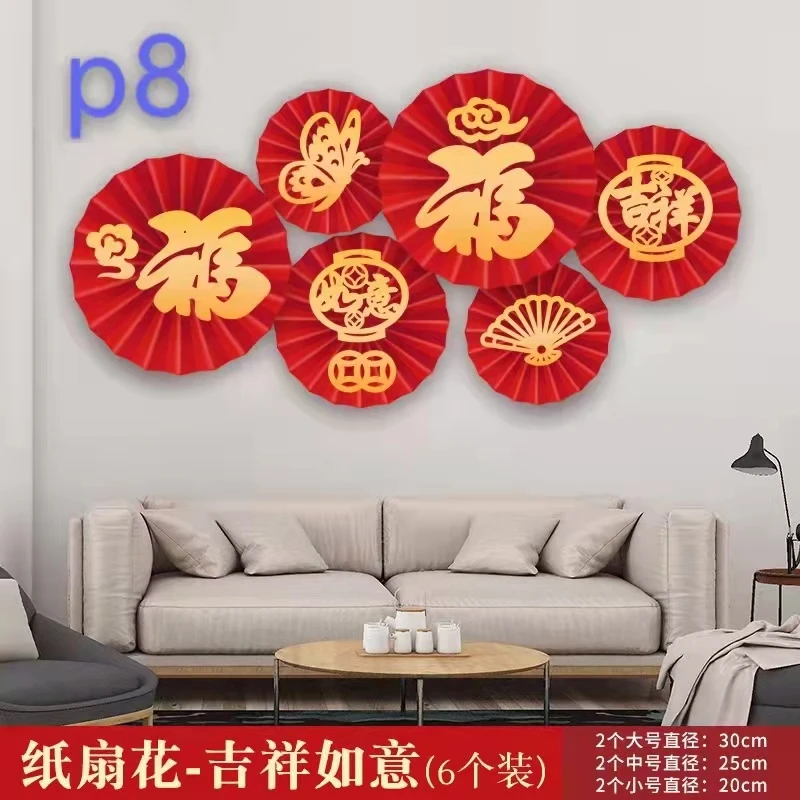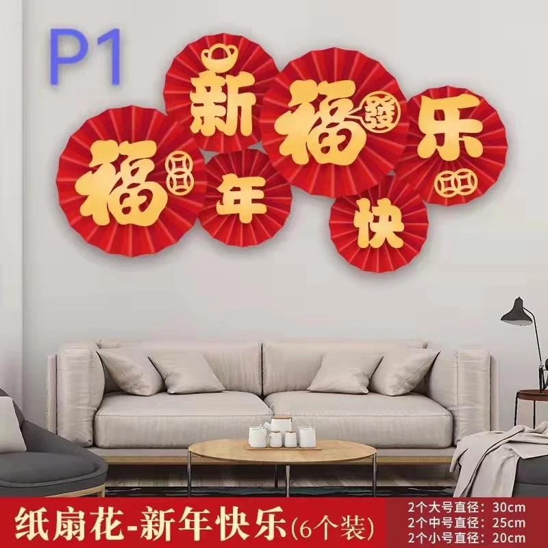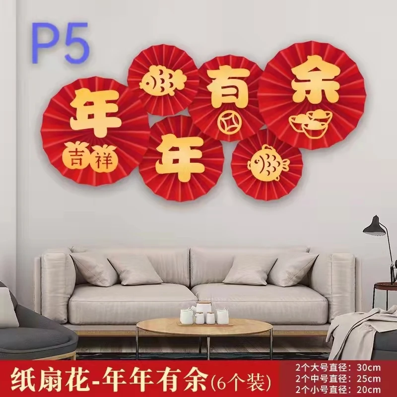 6pcs/lot 2022 Chinese New Year and Spring Festival Paper Flowers Fan Decoration